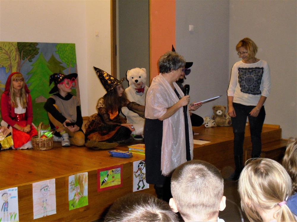 Kolejnym punktem spotkania było rozdanie dyplomów i nagród dla zwycięzców konkursu pt. „Portret Pinokia”. Prace wszystkich tych dzieci można obejrzeć w bibliotece.