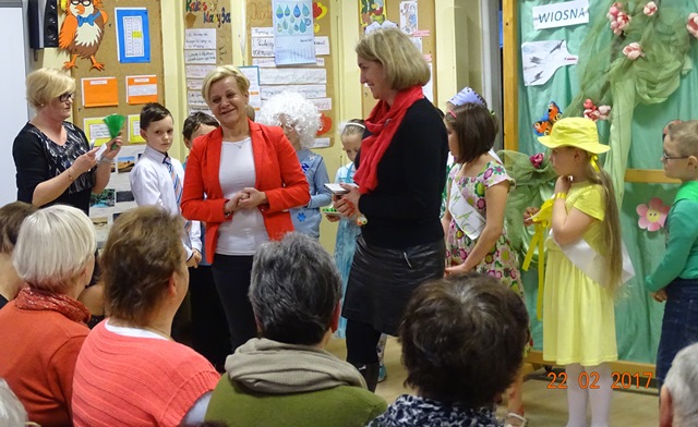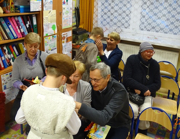 Spotkanie z dziadkami uświetniły swoją obecnością obydwie panie Dyrektor SP nr 1, p. Elżbieta Bodziony i p. Barbara Dyrek. One również miłymi słowami zwróciły się do naszych seniorów, zwracając uwagę na ich wielki wkład w wychowanie wnuków i życzyły im 100 lat w zdrowiu. Po przedstawieniu dziadkowie zostali obdarowani własnoręcznie przez wnuki wykonanymi laurkami i upominkami, a następnie przeszli na pyszny poczęstunek przygotowany przez mamy. Ten dzień na pewno pozostanie na długo w ich pamięci.