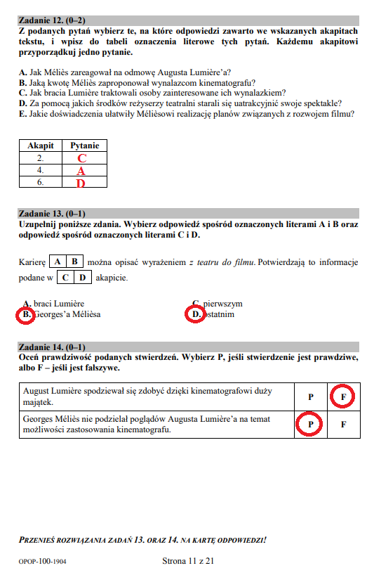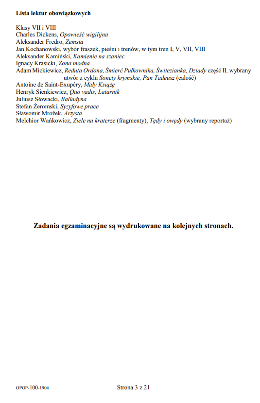Zadanie 21: Przykładowa odpowiedź: Napis po rosyjsku nawiązuje do procesu rusyfikacji młodzieży w szkołach. Akcja powieści dzieje się na ziemiach polskich pod zaborem rosyjskim. Patriotyczną postawę ukazaną w powieści symbolizują na plakacie biało-czerwone skrzydła.
