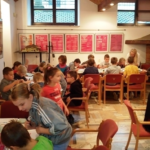 Główną częścią zajęć było stworzenie Osobistego Wzornika Etnodizajnera. Według instrukcji każde dziecko wykonało swoją własną aplikację na bawełnianej koszulce. Zajęcia były bardzo ciekawe i inspirujące nie tylko dla dzieci. Również panie i mamy wykonały swoją niepowtarzalną koszulkę zainspirowaną motywami ludowymi.