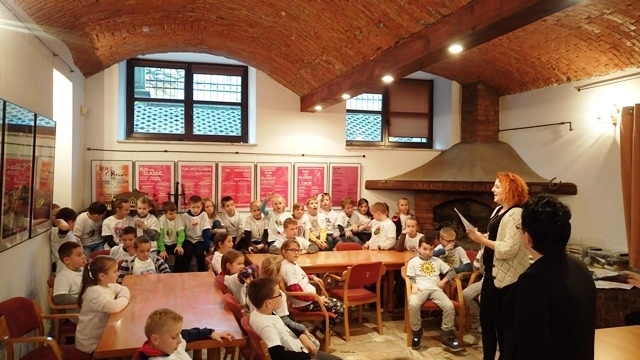 Zajęcia rozpoczęły się od zapoznania uczestników z Wzornikiem Inspiracji Etnograficznych. Dzieci dowiedziały się co to jest kultura ludowa. Na czym polega styl Folk-Etno. Pani prowadząca zajęcia przedstawiła tajniki powstawania tradycyjnych wzorów i motywów ludowych – góralskich i lachowskich oraz ich symbolicznego i obrzędowego znaczenia. W formie prezentacji multimedialnej oraz dzięki rekwizytom przedstawiła współczesne oblicza dizajnu inspirowanego miejscowym folklorem.