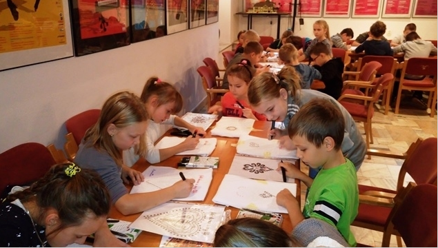 Główną częścią zajęć było stworzenie Osobistego Wzornika Etnodizajnera. Według instrukcji każde dziecko wykonało swoją własną aplikację na bawełnianej koszulce. Zajęcia były bardzo ciekawe i inspirujące nie tylko dla dzieci. Również panie i mamy wykonały swoją niepowtarzalną koszulkę zainspirowaną motywami ludowymi.