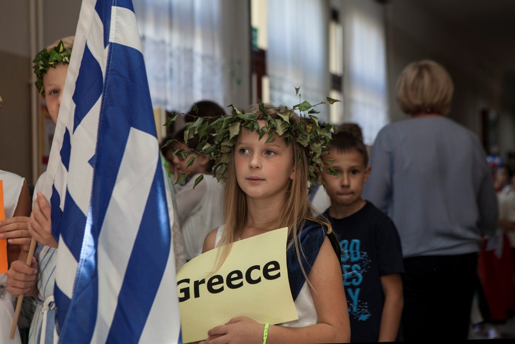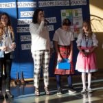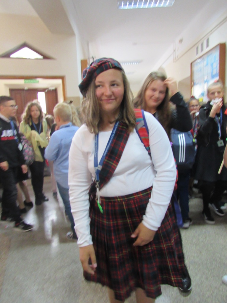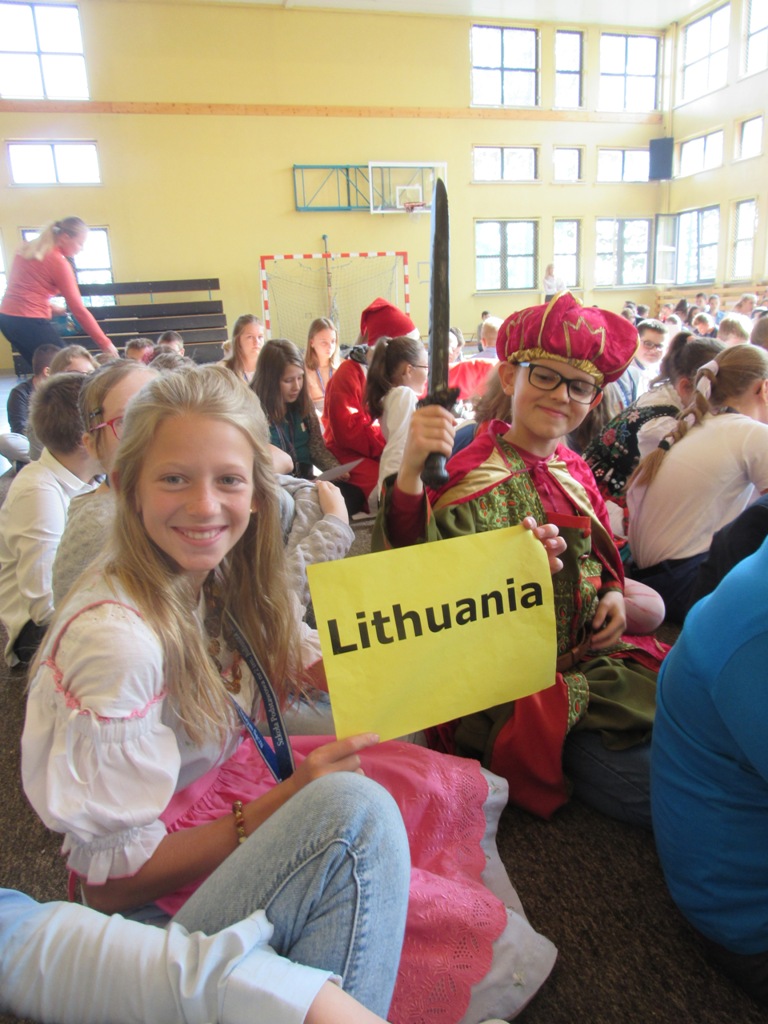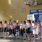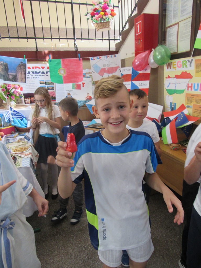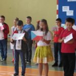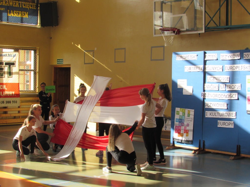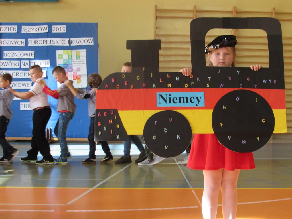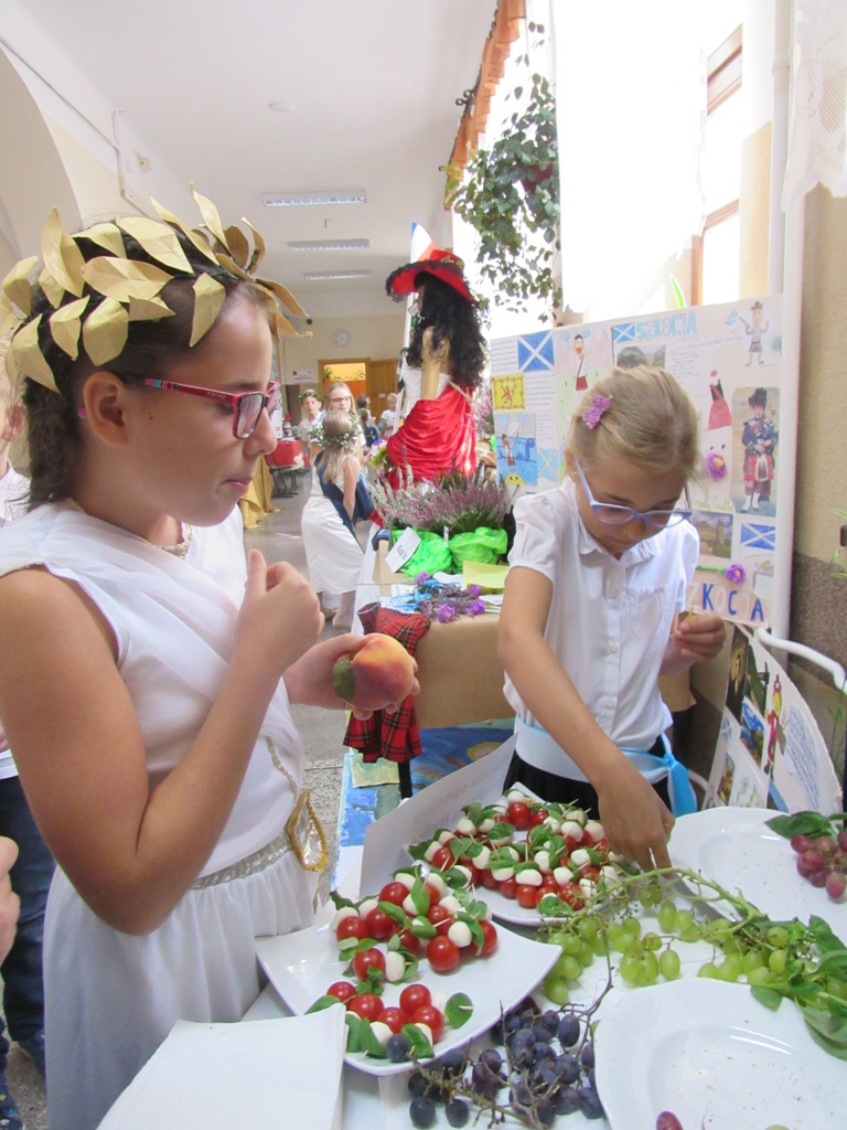 Gdy we czwartek, 26 września, w szkole rozbrzmiały dźwięki „Ody do radości”, na sali gimnastycznej pojawiły się wszystkie klasy wraz z nauczycielami. Każda klasa reprezentowała jeden z 16 europejskich krajów objętych projektem. Uroczysty przemarsz reprezentacji z 16 europejskich krajów rozpoczął szkolny finał projektu. Szymon Kostrzeba i Piotr Damasiewicz z kl. VIa ubrani w tradycyjne stroje szkockie w towarzystwie Wiktorii Damasiewicz z kl. Va w stroju litewskim powitali obecną na sali gimnastycznej dyrekcję szkoły, uczniów oraz nauczycieli. Przypomnieli również, iż nie tylko podczas Europejskiego Dnia Języków, ale każdego dnia, należy pamiętać o tym, że inny język to inna wizja świata. Finał szkolnego projektu pod patronatem honorowym Przedstawicielstwa Komisji Europejskiej otwarła dyrektor szkoły, Wioletta Nowak. Część artystyczną, podczas której wystąpiły wszystkie klasy poprowadziła Amelia Tokarczyk z kl.VIIIa.