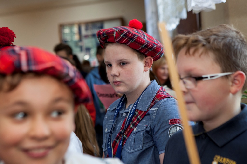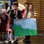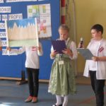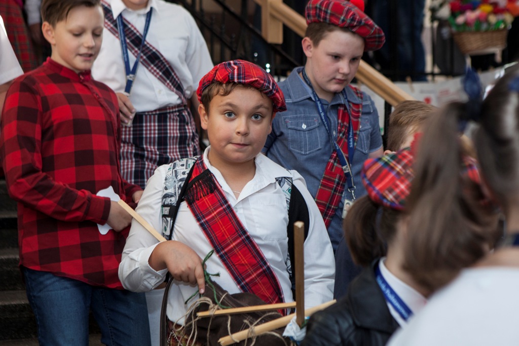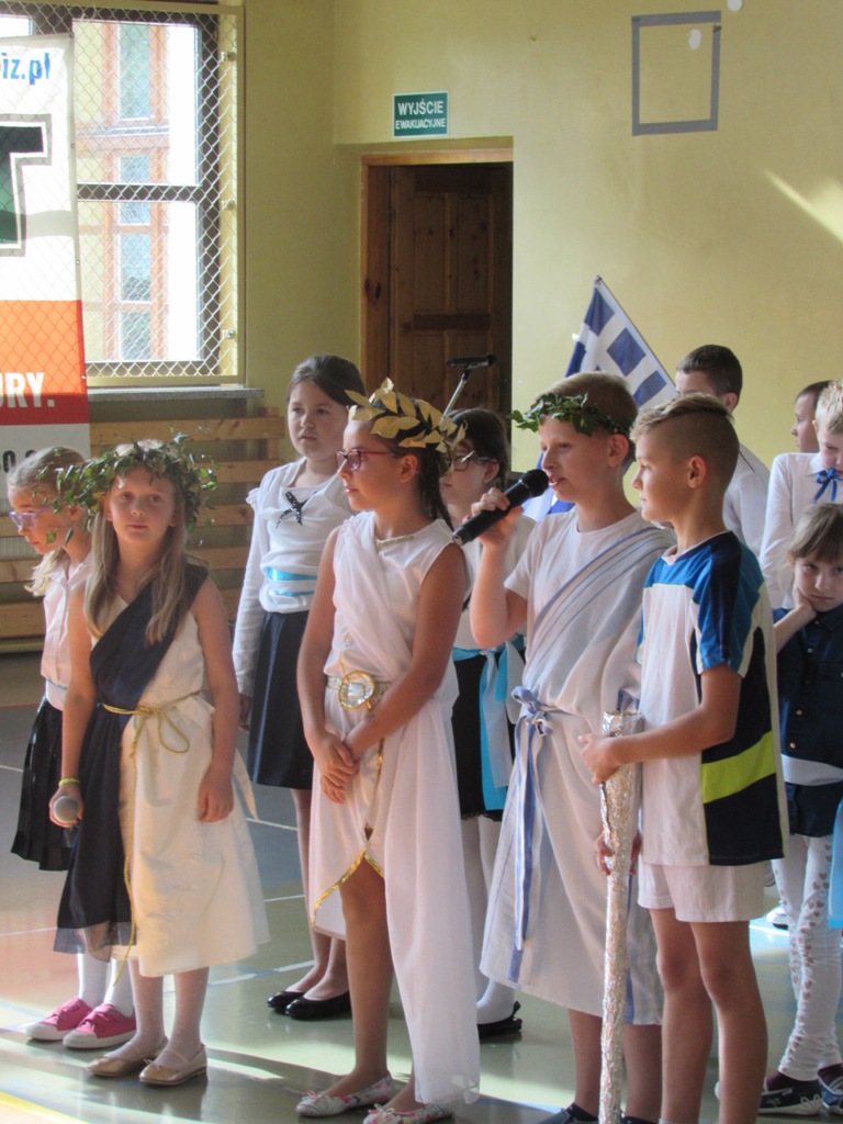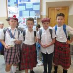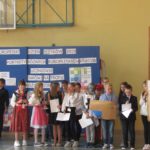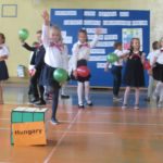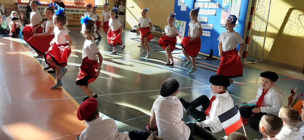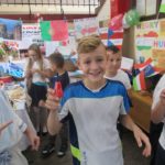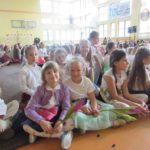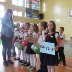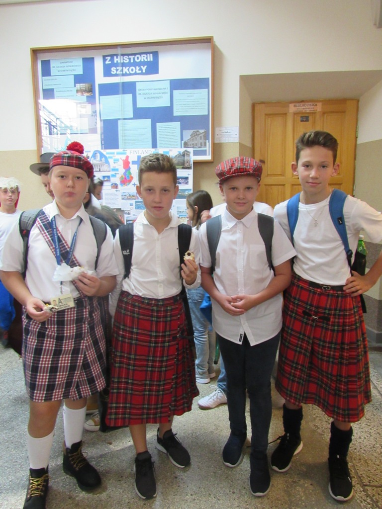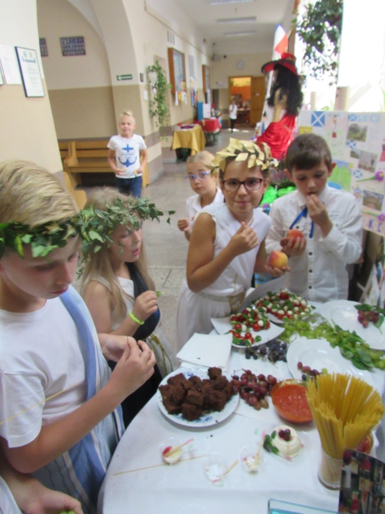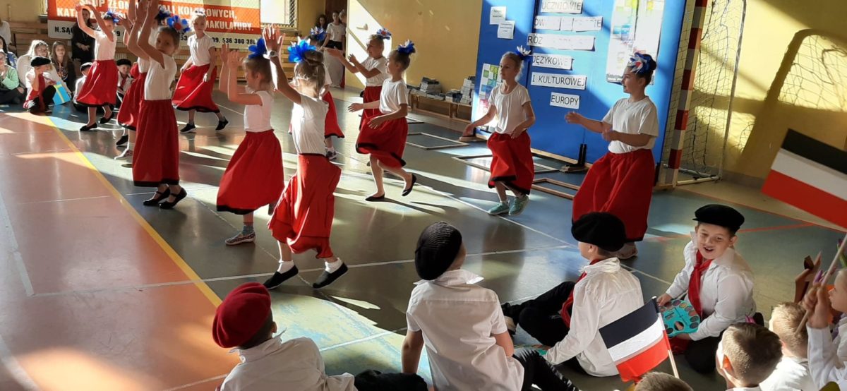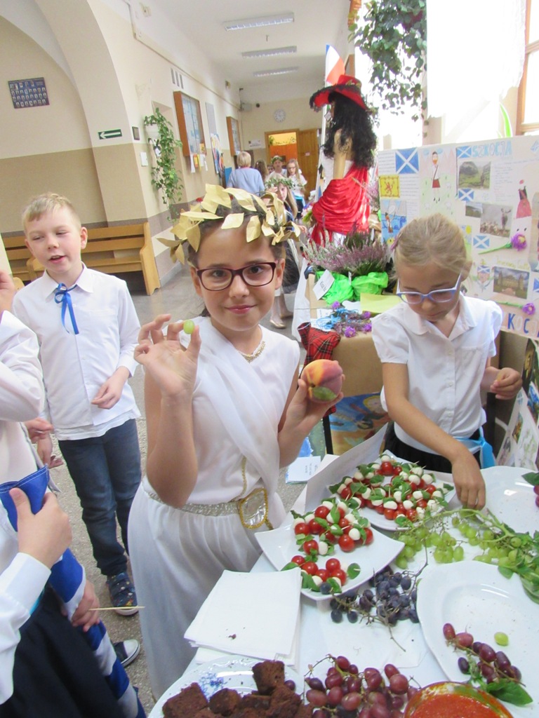 Gdy we czwartek, 26 września, w szkole rozbrzmiały dźwięki „Ody do radości”, na sali gimnastycznej pojawiły się wszystkie klasy wraz z nauczycielami. Każda klasa reprezentowała jeden z 16 europejskich krajów objętych projektem. Uroczysty przemarsz reprezentacji z 16 europejskich krajów rozpoczął szkolny finał projektu. Szymon Kostrzeba i Piotr Damasiewicz z kl. VIa ubrani w tradycyjne stroje szkockie w towarzystwie Wiktorii Damasiewicz z kl. Va w stroju litewskim powitali obecną na sali gimnastycznej dyrekcję szkoły, uczniów oraz nauczycieli. Przypomnieli również, iż nie tylko podczas Europejskiego Dnia Języków, ale każdego dnia, należy pamiętać o tym, że inny język to inna wizja świata. Finał szkolnego projektu pod patronatem honorowym Przedstawicielstwa Komisji Europejskiej otwarła dyrektor szkoły, Wioletta Nowak. Część artystyczną, podczas której wystąpiły wszystkie klasy poprowadziła Amelia Tokarczyk z kl.VIIIa.