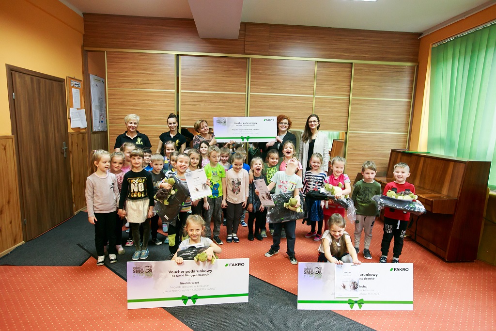 Skuteczna walka ze smogiem to także edukacja, a ta jest najciekawsza, gdy w grę wchodzi zabawa, zwłaszcza z nagrodami. Pod koniec listopada 2018 roku firma FAKRO, w trosce o najmłodszych, rozpoczęła lokalną kampanię społeczno-edukacyjną „Pokonaj SMOGA z FAKRO”. W ramach akcji zrealizowany został konkurs, w którym nadesłano ponad 60 prac.
