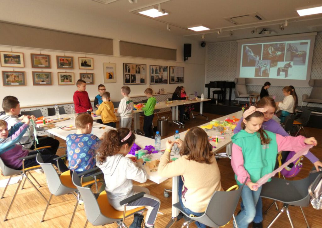 Ogromnym powodzeniem cieszyły się warsztaty artystyczne, na których można było zobaczyć pomysłowość i kreatywność uczestników. Dzieci stworzyły piękne prace: pejzaże, maski, ozdoby karnawałowe oraz z wykorzystaniem materiałów wtórnych. W ruch poszły nożyczki, spore ilości klejów, farb, kolorowych papierów oraz wszystkich dodatków dekoracyjnych i recyklingowych. Warsztaty rozbudziły wyobraźnię, rozwinęły umiejętność stosowania różnych technik i materiałów plastycznych.
