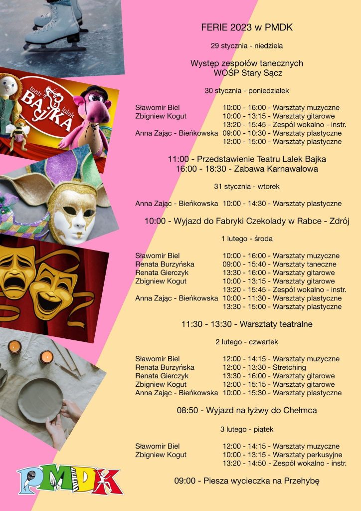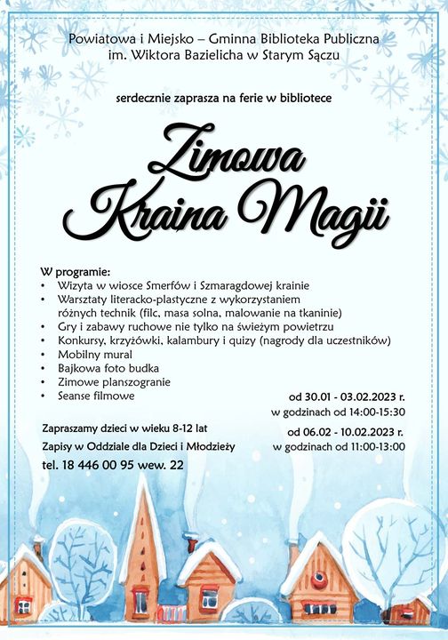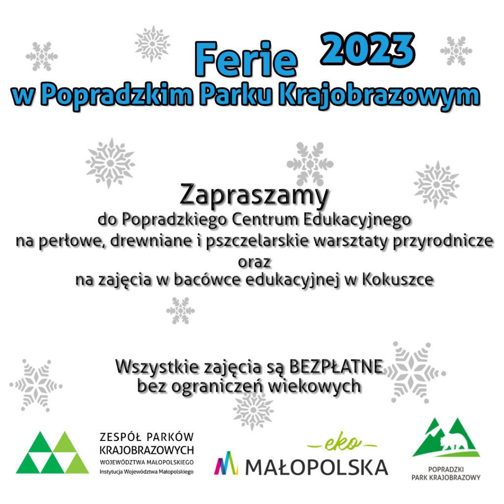 Przed nami dwa tygodnie ferii zimowych. Sprawdźcie, co szykuje się w naszych bibliotekach, Centrum Kultury i Sztuki im. Ady Sari, Powiatowym Młodzieżowym Domu Kultury i Popradzkim Parku Krajobrazowym. Zapraszamy!