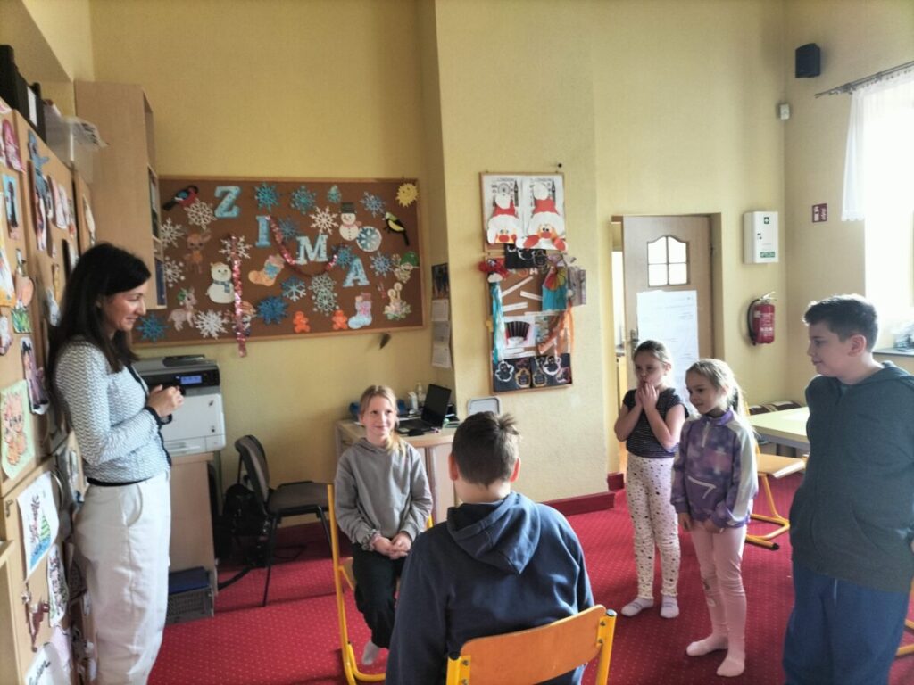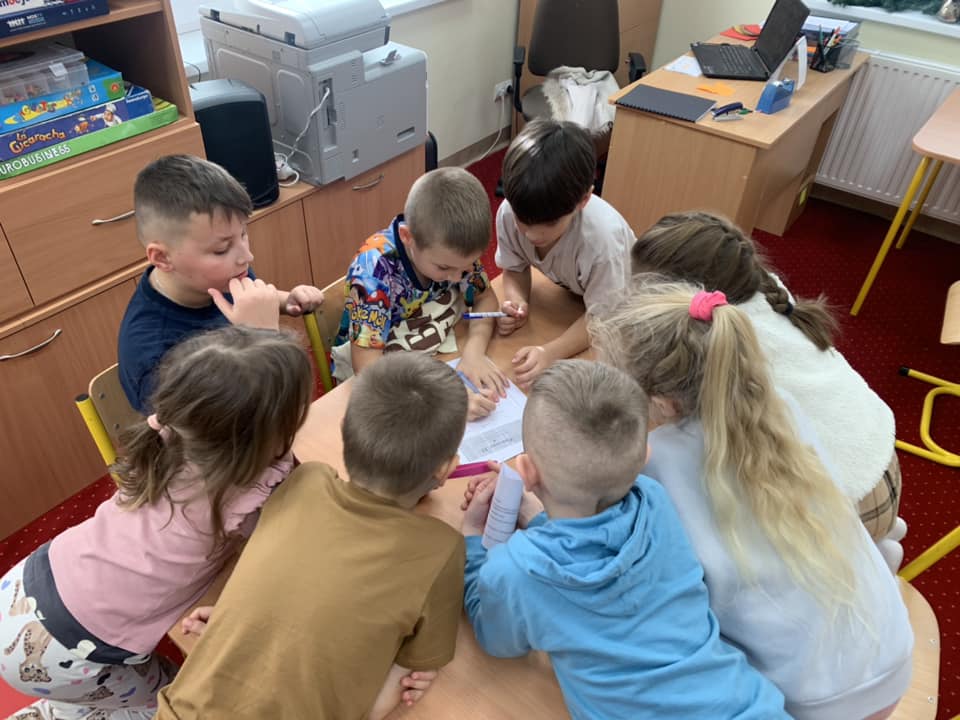 Podczas „podchodów psychologicznych”prowadzonych przez psychologawychowankowie rywalizowali w zabawach i quizach,wykazując się sprytem i „otwartym umysłem”. Natomiast w ramach zajęć bibliotecznych były czytane ciekawe historie, do których zostały wykonane tematyczne prace plastyczne.