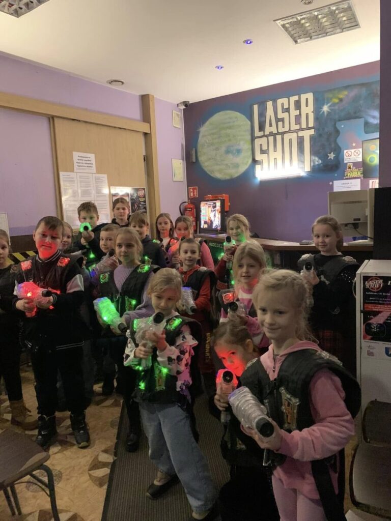Nieco odmienną, lecz wyczekiwaną atrakcją dla dzieci był wyjazd do Centrum Rozrywki LaserShot, gdzie liczyła się współpraca i działanie grupowe. Rywalizacja grupowa w realiach starannie wyreżyserowanego i przygotowanegolabiryntu pozwala rozwinąć zmysł spostrzegawczości i refleksu.