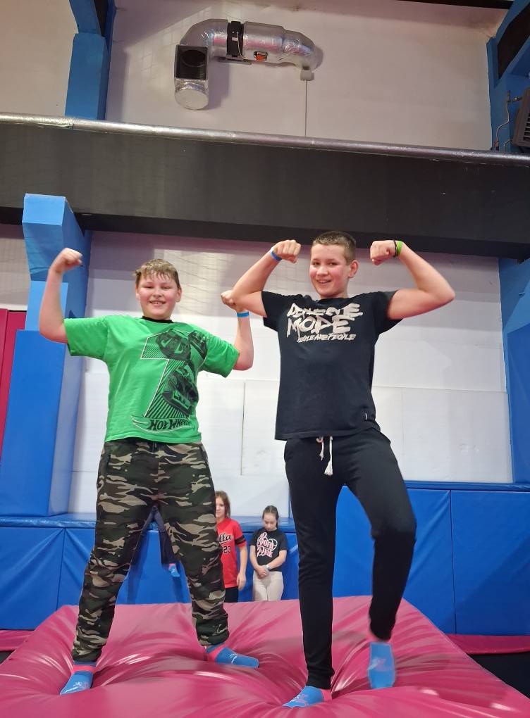Obydwie grupy odwiedziły Park Trampolin – Jump Mania, w którym wszyscy wychowankowie, bez wyjątków, oddali się aktywności fizycznej w różnych odsłonach.Zabawa i ruch wprawiły wychowanków w dobry humor. Podejmowane indywidualne próby pobicia własnych rekordów sportowych pokazały, że wszystko jest możliwe!!!