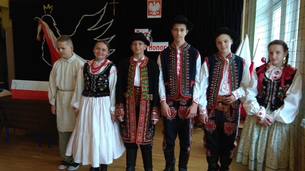 14 listopada w Szkole Podstawowej im. 1PSP AK w Gaboniu w ramach realizacji zarówno projektu, jak i obchodów 101 rocznicy odzyskania niepodległości , uczniowie pod opieką nauczycieli przygotowali akademię. Podczas krótkiej acz treściwej inscenizacji życia Polaków na przestrzeni kilku stuleci, wszyscy mogli sobie przypomnieć historię naszego kraju, rozbiorów, życia rodziny, szkoły i kościoła pod władzami trzech zaborców. Na zakończenie tak cennej lekcji historii uczniowie biorący udział w ,,Przeglądzie Pieśni Patriotycznych” w Starym Sączu pięknie zaśpiewali pieśni: ,,My, Pierwsza Brygada”, ,,Szara Piechota”, ,,Wojenko, wojenko”. Następnie przeprowadzono turniej wiedzy patriotycznej i regionalnej, pt.,, Kocham Cię, Polsko”. Obejmował on, zgodnie z podanym wcześniej regulaminem, treści dotyczące wiedzy ogólnej o Polsce, treści o kulturze ludowej naszego regionu, szczególnie lachowskiej i góralskiej oraz treści dotyczące ważnych postaci historycznych Polski. Po ogłoszeniu wyników konkursu, rozdaniu dyplomów i nagród, uczniowie zaprezentowali bogactwo strojów lachowskich i góralskich w przygotowanym ,,Pokazie Mody Strojów Regionalnych”. Pani Maria Zaryczny przybliżyła wszystkim kulturę , tradycję bogactwo strojów Lachów Sądeckich , a Pani Sylwia Kotas- Górali Podhalańskich oraz Górali Białych.