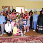Na zakończenie dzieci ustawiły się do wspólnego zdjęcia. Zanim aktorzy opuścili przedszkole, zostali nagrodzeni za występ: oprócz braw i podziękowań panie przedszkolanki poczęstowały wszystkich występujących słodyczami.
