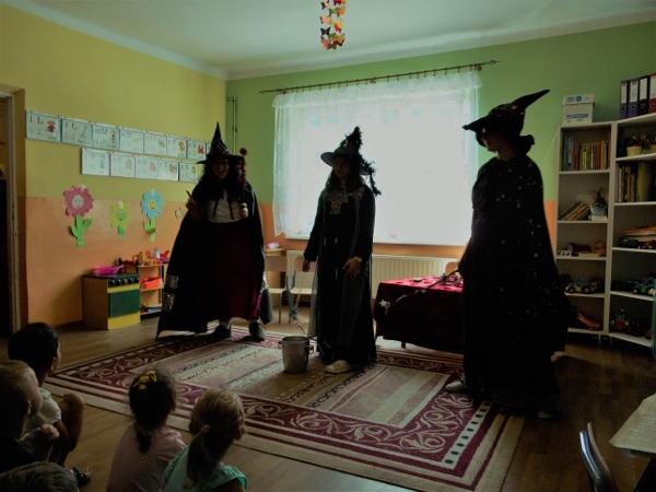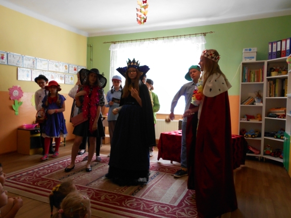 Dla przedszkolaków z pewnością przebywanie wśród uczniów-aktorów jest ogromnym przeżyciem. W tym roku maluchy mogły obejrzeć rekwizyty uwspółcześnionych krasnoludków, założyć na głowę koronę króla Baja, różowe czapki dobrych wróżek lub czarne kapelusze złych czarownic. Co śmielsze rozmawiały z „baśniowymi postaciami”.