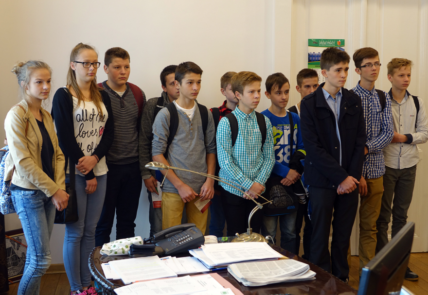 Dzisiaj w Starostwie Powiatowym w Nowym Sączu odbyła się kolejna Lekcja samorządowa. Tym razem uczestniczyli w niej gimnazjaliści z Podola Górowej. Młodzi ludzie mieli okazję, aby zapoznać się z zadaniami realizowanymi przez samorząd powiatowy, zobaczyć jak funkcjonuje Starostwo i zwiedzić gabinet starosty Marka Pławiaka.