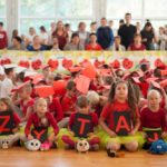 W uroczystości uczestniczyli także starsi uczniowie klas IV –VIII, rodzice i dziadkowie , w sumie 111 osób. Spotkanie uczniów klas I- III ( 129 uczestników) ubranych w czerwone, białe i czarne podkoszulki zakończyło się wspólnym „żywym” zdjęciem – biedronki.