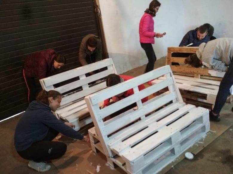 Po zaliczonym egzaminie gimnazjalnym w ciągu 3 dni grupa zorganizowała się i przy życzliwości rodziny Pawlików, u których młodzież wykonywała prace, dokonali niemożliwego. Powstał elegancki zestaw mebli z palet, który od połowy kwietnia zdobi szkolny sklepik i służy społeczności szkolnej.