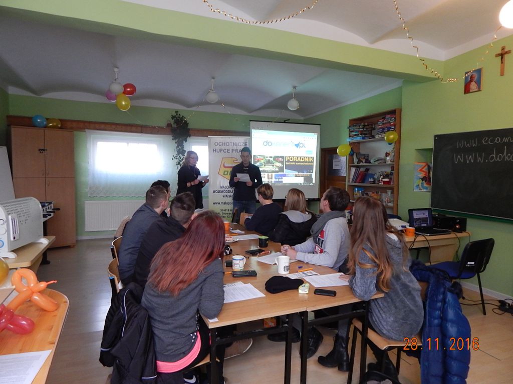W starosądeckiej jednostce w projekcie uczestniczy 10 – osobowa grupa młodzieży w wieku między 18 a 24 rokiem życia. Podczas spotkań z doradcą zawodowym grupa beneficjentów miała okazję się lepiej poznać i zintegrować. Zostały przeprowadzone bloki tematyczne dotyczące kompetencji i predyspozycji zawodowych, bariery na drodze do zatrudnienia oraz analiza rynku pracy, dokumenty aplikacyjne –wizytówką zawodową. Na zajęciach beneficjenci mogli uczestniczyć w warsztatach sztuki mówienia i autoprezentacji na rozmowie kwalifikacyjnej. Na przedostatnie zajęcia został zaproszony doradca sieci EURES p. Krzysztof Borek, który szczegółowo omówił zasady korzystania z w/w sieci. Na zakończenie został przeprowadzony quiz odnośnie wiadomości o sieci Eures, ECAM www.dokariery.pl Zwycięzcom konkursu zostały wręczone atrakcyjne nagrody. W ramach projektu w najbliższym czasie planowane są grupowe zajęcia z psychologiem oraz indywidualne wsparcie psychologiczne.