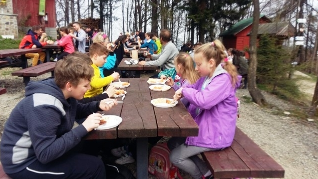 Rankiem w dniu święta patrona harcerzy – św. Jerzego – wyruszyliśmy z Przysietnicy autokarem w stronę Beskidu Małego. W miejscowości Ponikwia rozpoczęliśmy wędrówkę niebieskim szlakiem prowadzącym przez Groń Jana Pawła II na Leskowiec. W czasie marszu podziwialiśmy piękne widoki, obserwowaliśmy przyrodę i wspólnie pokonywaliśmy trudności trasy.