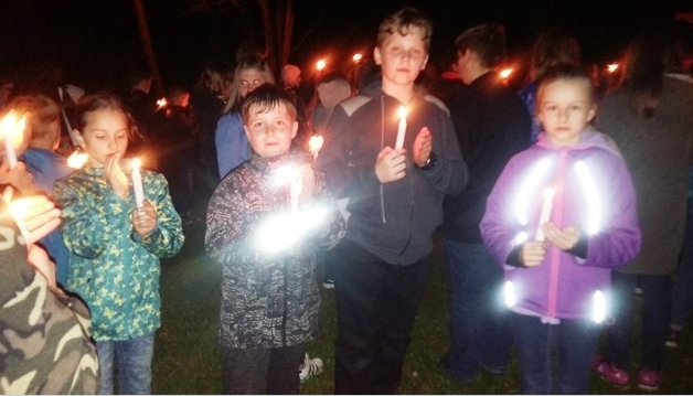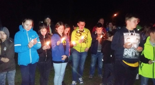 Ok. 22:30 wyruszyliśmy na kalwaryjskie dróżki Pana Jezusa. W przepięknym nabożeństwie prowadzonym przez Kapelana Hufca Wadowice, w świetle świec i pochodni rozważaliśmy stacje Drogi Światła.