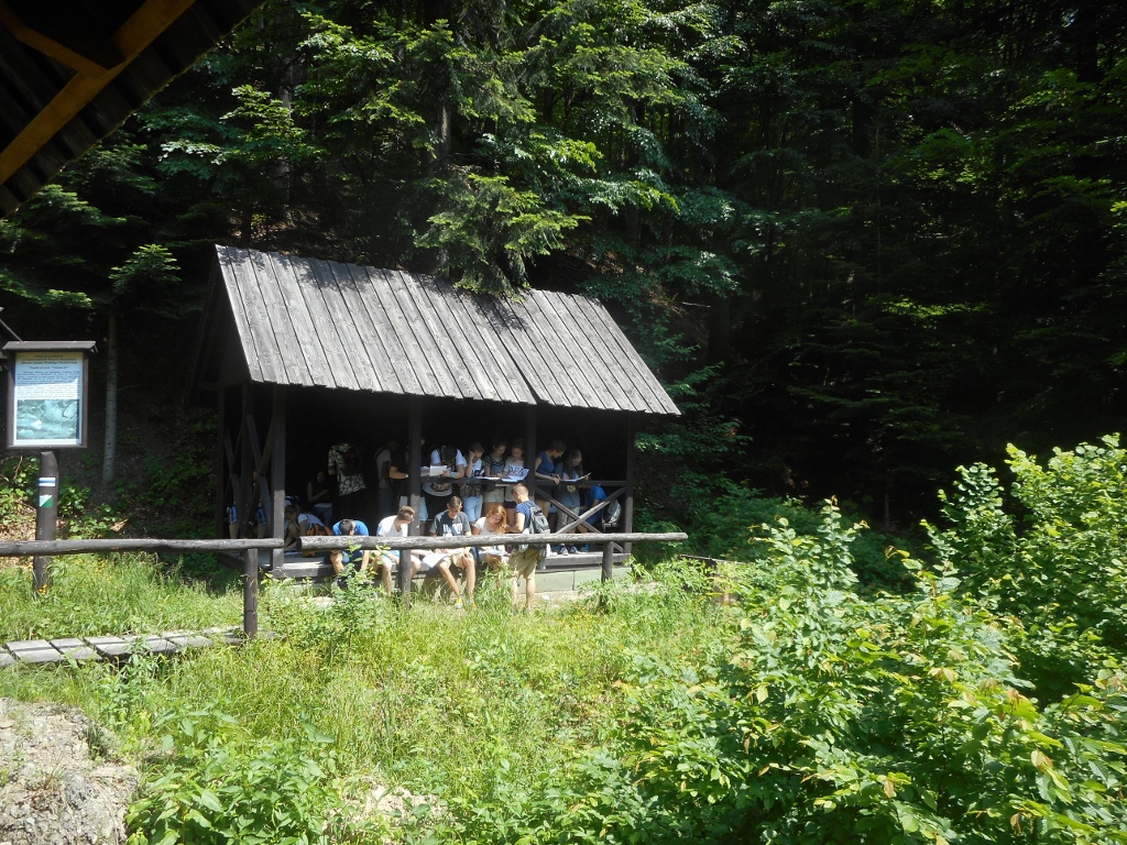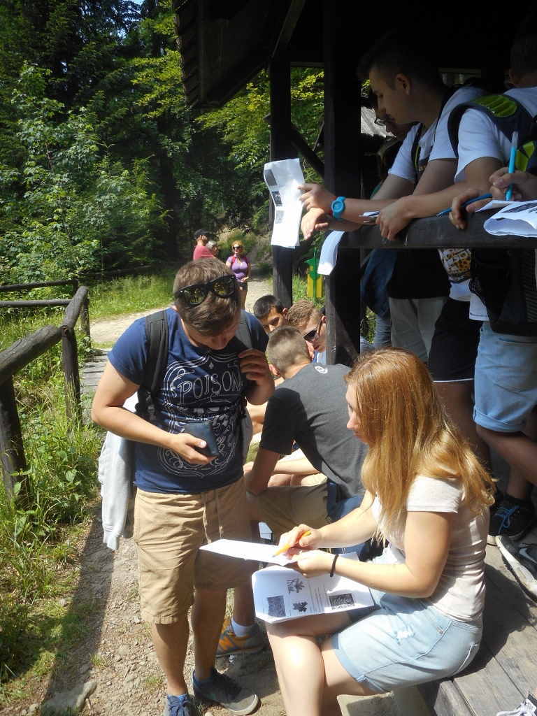 Dwie grupy prowadzone przez pracowników Popradzkiego Parku Krajobrazowego, Marka Kroczka oraz Wojciecha Skocznia mogły zobaczyć bogactwo przyrodnicze gór, a także powierzchniowy pomnik przyrody Głęboki Jar. To tam nadszedł czas odpoczynku, ale także było to doskonałe miejsce na drugi etap polsko-węgierskiego konkursu przyrodniczego o Popradzkim Parku Krajobrazowym. Zadaniem uczniów było narysowanie w polsko-węgierskich parach siedmiu gatunków roślin, których nazwy zostały podane w języku polskim, angielskim i oczywiście węgierskim. Powstały szkice głogu, zawilca, lipy drobnolistnej, dębu bezszypułkowego, leszczyny pospolitej, skrzypu polnego i jesionu, które zostały ocenione przez pracowników Zespołu Parków Krajobrazowych Województwa Małopolskiego. Na zakończenie polsko-węgierskiej wyprawy była okazja do podziwiania pięknej panoramy na krajobraz Doliny Popradu z punktu widokowego znanego jako „Ślimak”, znajdującego się na szczycie góry Dzielnica (539 m n.p.m.) w Woli Kroguleckiej.