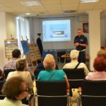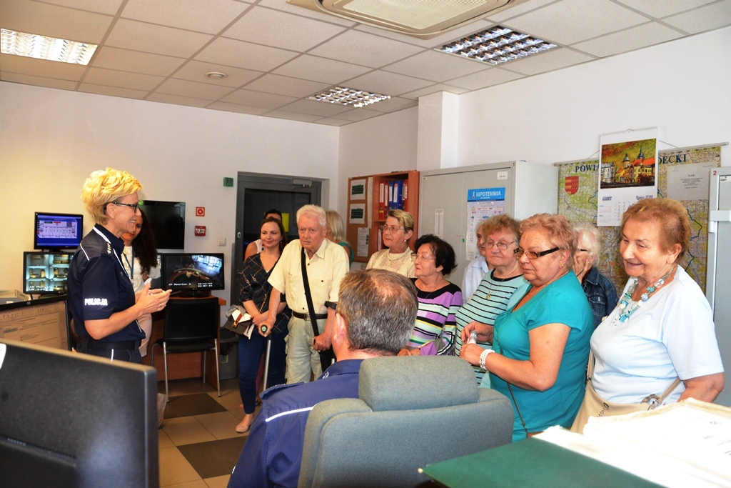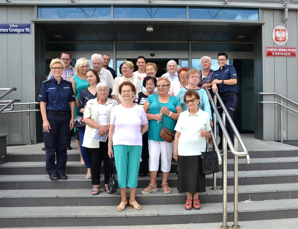 Przy okazji wizyty w sądeckiej komendzie Policji seniorzy wysłuchali prelekcji podkom. Justyny Basiagi – funkcjonariuszki Wydziału Prewencji oraz st. sierż. Artura Golińskiego – policjanta Wydziału Ruchu Drogowego, którzy omówili m.in. kwestie dotyczące bezpieczeństwa seniorów, w tym przestępstw popełnianych na szkodę osób starszych oraz wskazali sposoby, jak im przeciwdziałać. Podopieczni Dziennego Domu Seniora otrzymali także ulotki o tematyce profilaktycznej.