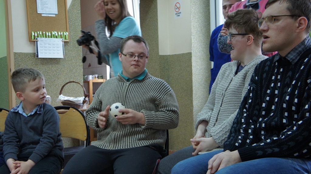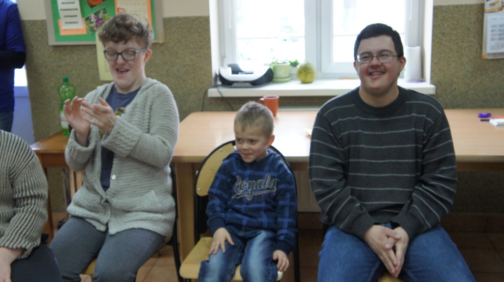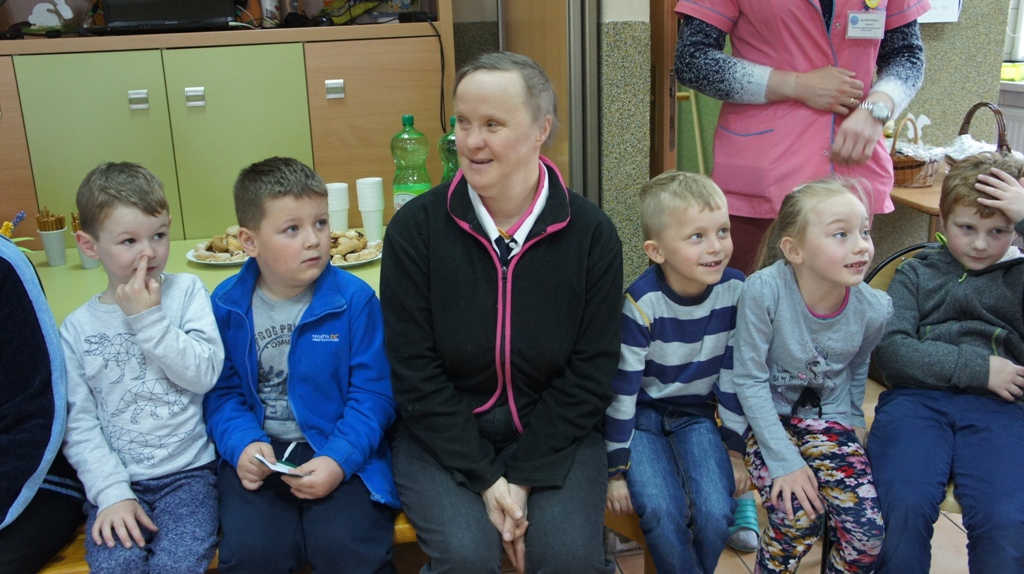 Obecna na zajęciach pani psycholog, opowiedziała przedszkolakom o rodzajach niepełnosprawności i ich symboliką. Dzieci zaprezentowały umiejętności manualne i wokalne. Na zakończenie przedszkolaki częstowały podopiecznych ciasteczkami, przygotowanymi przez ich rodziców, a oni ugościli ich słodyczami.