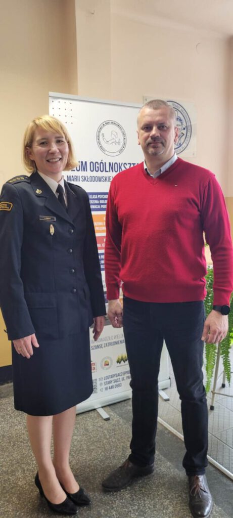 Starosądeczanka i absolwentka Liceum Ogólnokształcącego im. Marii Skłodowskiej-Curie w Starym Sączu, st. kpt. mgr inż. Joanna Binio z wizytą w starosądeckim liceum.