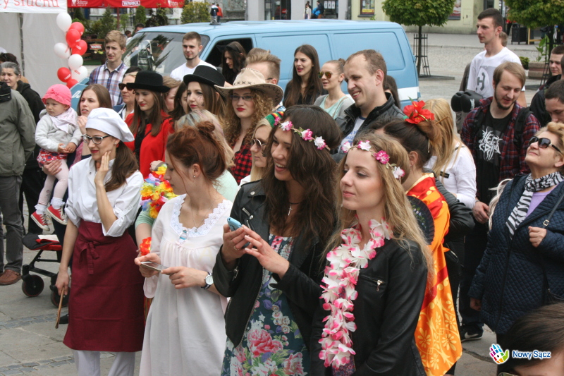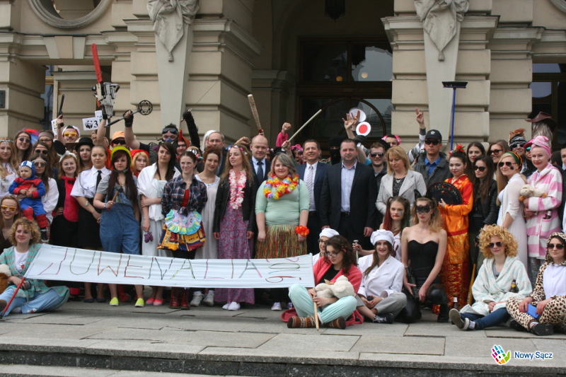 Wręczenie insygniów władzy nastąpiło na schodach nowosądeckiego ratusza. Poprzedził je barwny pochód żaków ulicami miasta od dworca PKP do Rynku. Do tradycji Juwenaliów należy przebieranie się w pomysłowe i dowcipne stroje, tak było i tym razem. Autorzy najciekawszych otrzymali nagrody w konkursie przeprowadzonym przed nowosądeckim ratuszem.