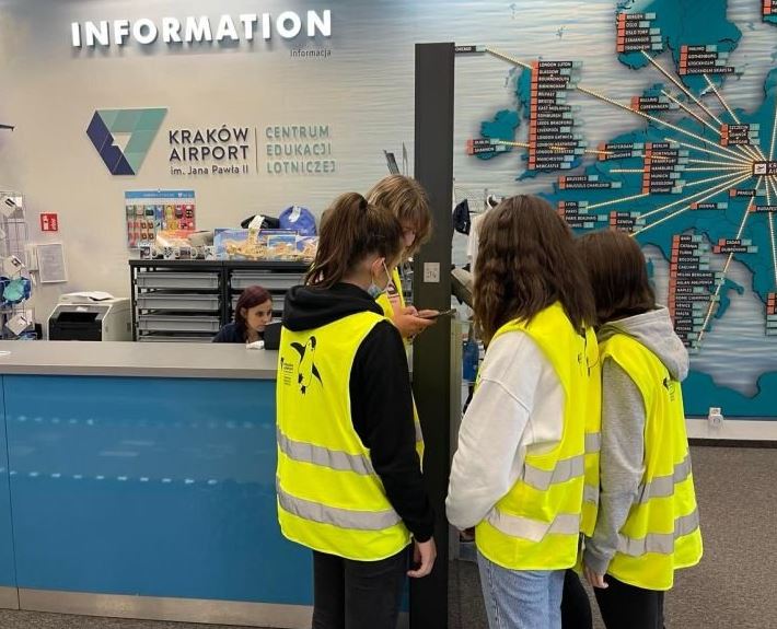 Po dotarciu na portal lotniczy udaliśmy się do Centrum Edukacji Lotniczej, gdzie przedstawiono nam reguły gry edukacyjnej. Naszym zadaniem było znalezienie odpowiedzi i rozwiązań do zagadek i łamigłówek, które musieliśmy sczytywać poprzez kody QR, korzystając z aplikacji internetowej. Poznaliśmy w ten sposób wiele zakamarków lotniska. Trzeba przyznać, że zadania były trudne i po zakończeniu gry wymienialiśmy się swoimi doświadczeniami, konfrontując zdobytą wiedzę z pracownikiem lotniska.