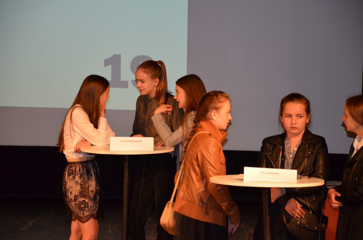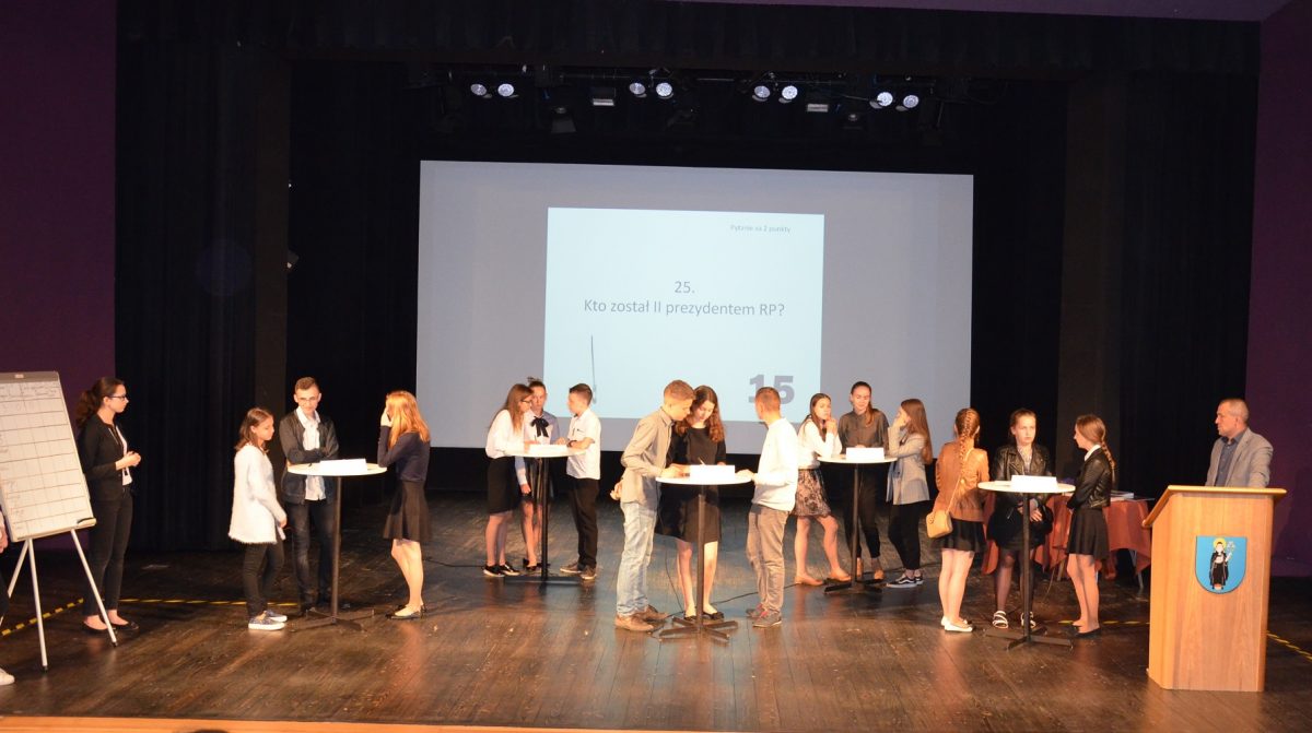 Do zmagań w pierwszej części, dotyczącej konkursu wiedzowego stanęło 5 szkół: Prywatne Gimnazjum w Starym Sączu, Szkoła Podstawowa Nr 2 w Starym Sączu, Szkoła Podstawowa w Gołkowicach, Szkoła Podstawowa w Barcicach oraz Szkoła Podstawowa w Gaboniu. Odpowiedzi oceniało niezależne jury w składzie: Pani Jolanta Sułkowska – nauczyciel historii w Zespole Szkół Ponadgimnazjalnych w Starym Sączu, Pan Andrzej Janczura – nauczyciel historii w Szkole Podstawowej w Rytrze oraz Pani Renata Burzyńska – nauczyciel plastyki Powiatowego Młodzieżowego Domu Kultury w Starym Sączu. O wyborze pytań decydowały trzyosobowe drużyny, które kierowały się skalą trudności i możliwością punktów do zdobycia, następnie zdobyte punkty mogły pomnożyć lub stracić w drodze licytacji, drużyny musiały więc wykazać się nie tylko ogromną wiedzą, odwagą, ale i również umiejętnością podjęcia ryzyka. Walka była bardzo wyrównana, a drużyny odważnie walczyły o zwycięstwo. Ostatecznie w części wiedzowej zwyciężyły następujące szkoły: