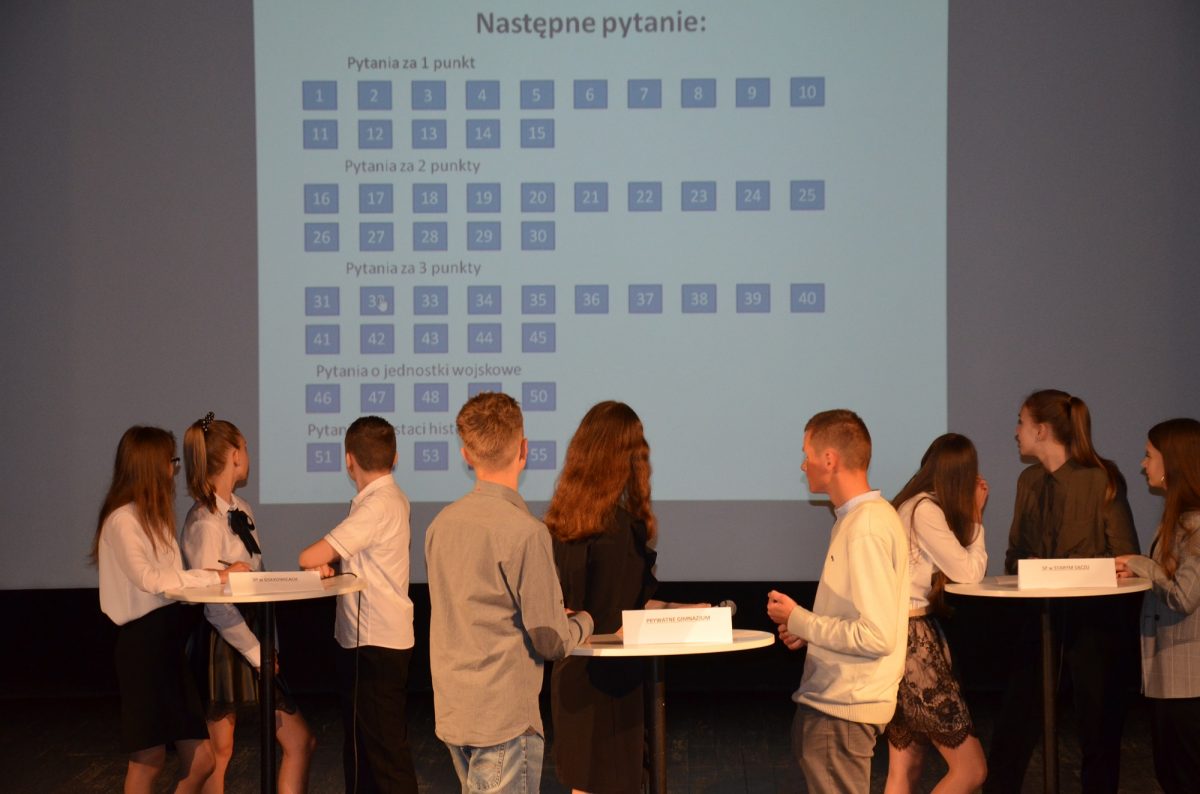 Nagroda specjalna za strój z epoki, na prośbę jury, przypadła uczniowi Prywatnego Gimnazjum – Michałowi Kuchni, który samodzielnie prezentował strój pułkownika Wojska Polskiego Władysława Zygmunta Beliny – Prażmowskiego, a całość dopełnił piękną prezentacją multimedialną i niesamowitą prelekcją. Wspaniałe nagrody w postaci bonów podarunkowych do Empiku, nagród książkowych oraz słodkich podarunków ufundowała Pani Iwona Rams – właściciel Prywatnego Gimnazjum, która jak co roku, kibicowała wszystkim uczestnikom. Gratulujemy uczniom ogromnej wiedzy i zapraszamy w przyszłym roku.