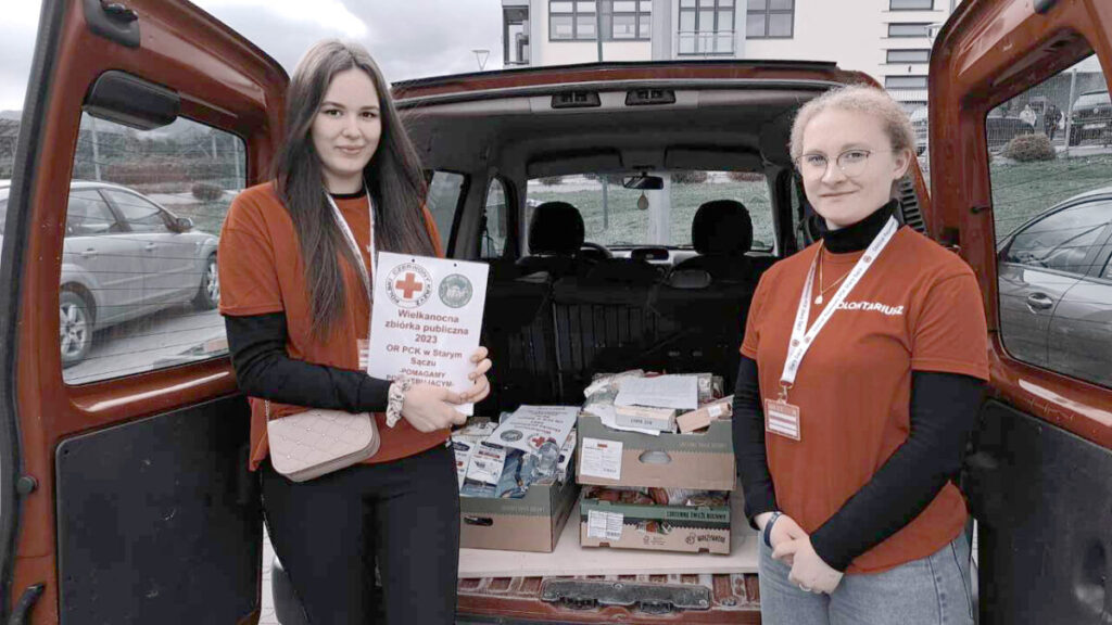 Członkowie Szkolnego Koła PCK działającego w Zespole Szkół im. św. Kingi w Łącku wzięli udział w wielkanocnej zbiórce „Pomagamy potrzebującym, bądź z nami”. Od 27 do 31 marca przez sześć godzin dziennie pełnili dyżur w miejscowych sklepach zbierając żywność z długim terminem przydatności do spożycia.