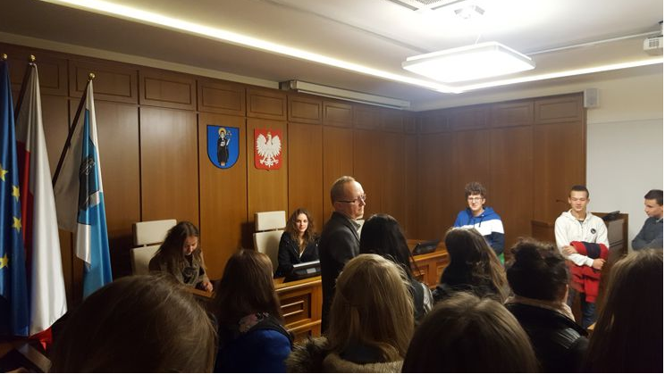 Prowadzącym zajęcia był pan Daniel Śmierciak, który zapoznał uczniów z procedurą pozyskiwania dowodów osobistych, działalnością Urzędu Stanu Cywilnego oraz z warunkami i sposobem rejestracji działalności gospodarczej. Uczniowie mieli również możliwość porozmawiania z Przewodniczącą Rady Miejskiej w Starym Sączu panią Ewą Zielińską. Lekcja była dla uczniów doświadczeniem, z którego na pewno skorzystają za dwa lata kiedy ukończą 18-ty rok życia, bo każdy z nich będzie musiał się zgłosić po dowód osobisty.