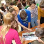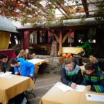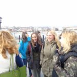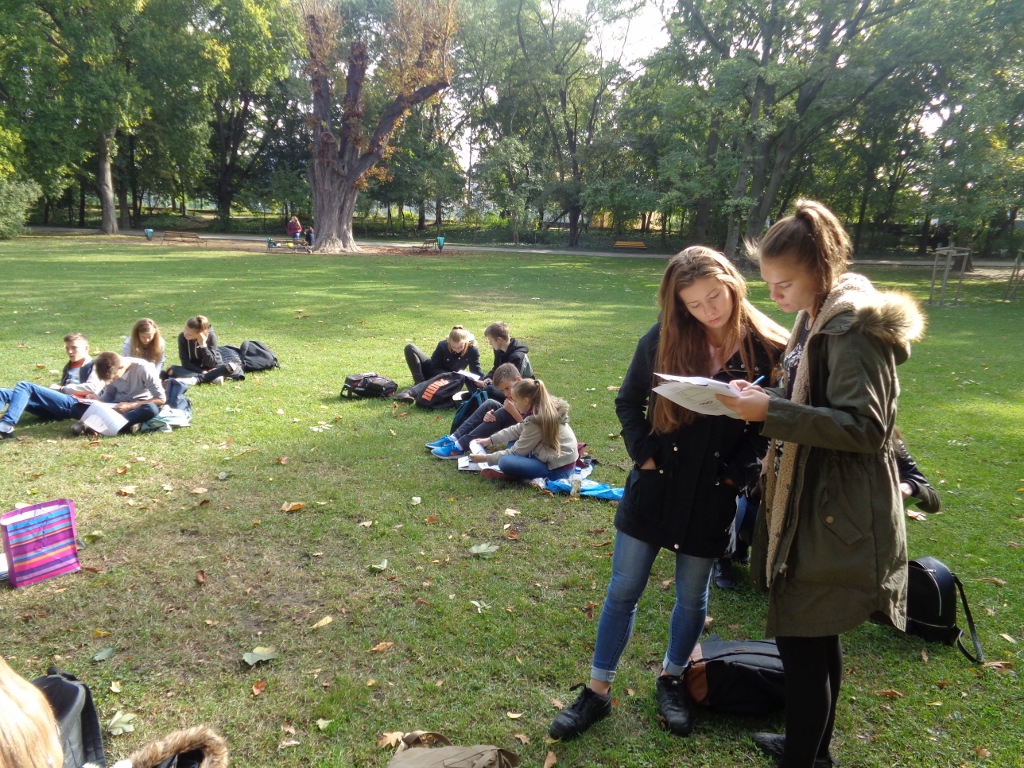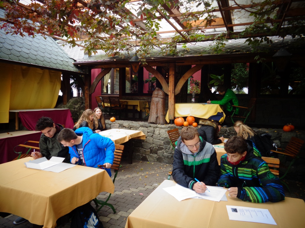 z przepięknym widokiem na zamek uczniowie w polsko-węgierskich parach rozwiązywali quiz wiedzy o Wyszehradzie, a wieczorem mieli okazję do wzięcia udziału w szkolnej dyskotece.