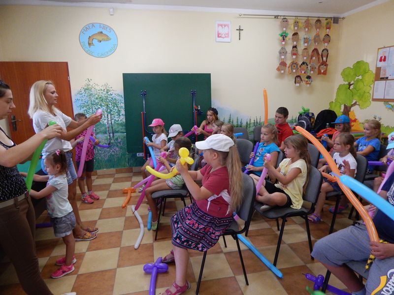 W czwartek uczestnicy mogli pochwalić się swoimi talentami plastycznymi i literackimi podczas konkursu pod tytułem „Najlepszy dzień na Zorganizowanych Zajęciach Wakacyjnych w Małej Wsi”. Powstało wiele pięknych prac ukazujących m.in.: wycieczkę do Rabkolandu, wyjście do kina czy tańce. Kolejną atrakcją dnia było malowanie buziek i wykonywanie spódniczek z kolorowej bibuły, w których następnie odtańczono radosne tańce. Dzielni tancerze otrzymali vouchery do Aqua Centrum Chełmiec ufundowane przez Wójta Gminy Chełmiec pana Bernarda Stawiarskiego. Na zakończenie wszyscy wraz z rodzicami mieli możliwość zjedzenia pysznych kiełbasek z grilla.