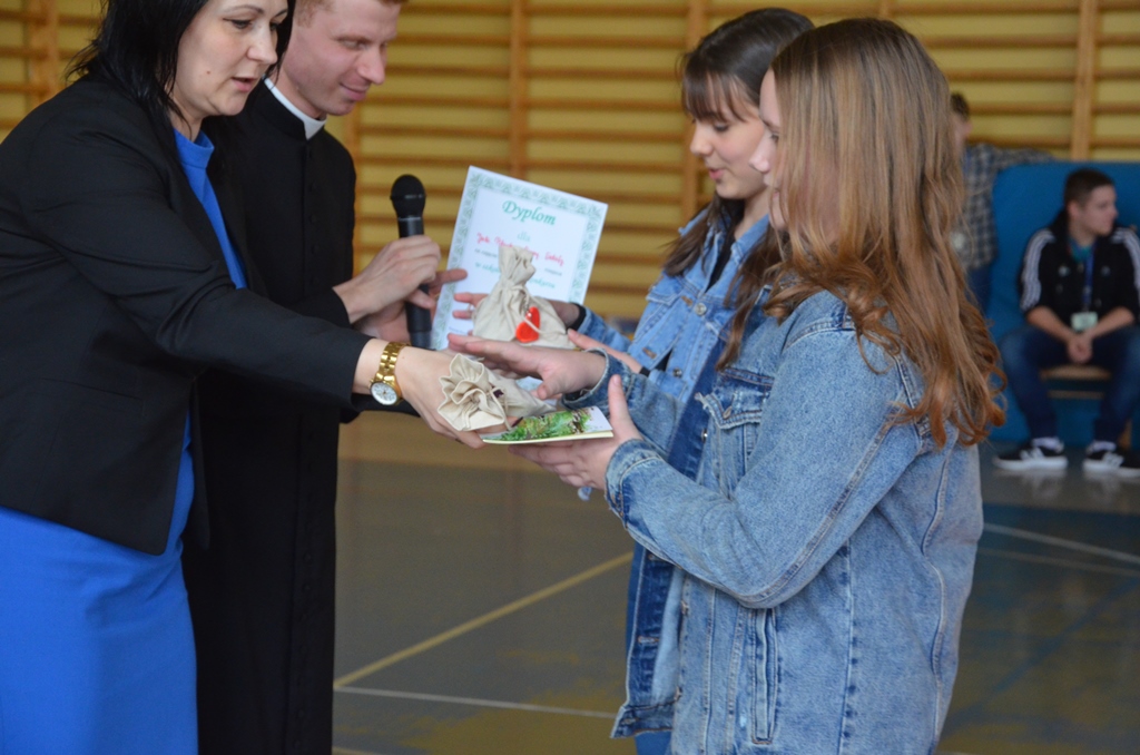 Jury miało trudny orzech do zgryzienia. Najlepsze talenty zostały nagrodzone statuetkami, medalami oraz nagrodami, które wręczała dyrektor placówki Wioletta Nowak i przewodniczący komisji JURY ks. Tomasz Chrupek. Warto dodać, że wszyscy uczestnicy konkursu otrzymali pamiątkowe gadżety.