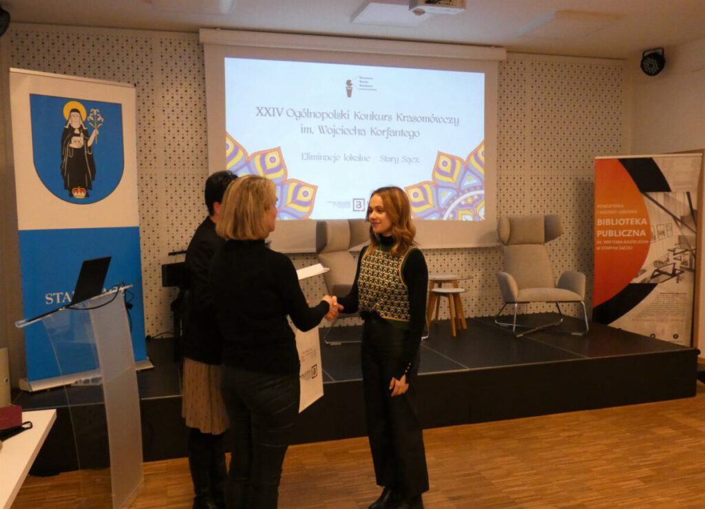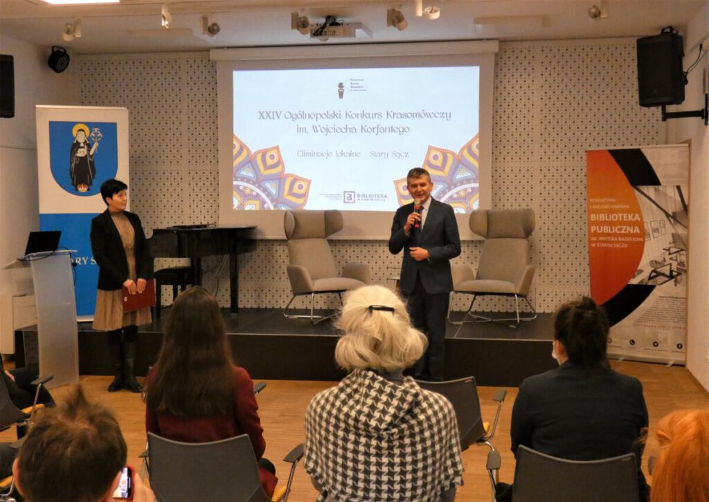 W dniu 15 lutego 2022 roku w gmachu Powiatowej i Miejsko – Gminnej Biblioteki Publicznej im. Wiktora Bazielicha w Starym Sączu odbyły się III lokalne eliminacje Ogólnopolskiego Konkursu Krasomówczego im. Wojciecha Korfantego zorganizowane z myślą o utalentowanej młodzieży gminy Stary Sącz i powiatu nowosądeckiego. Inicjatywę zaproponowano w ramach współpracy Szkoły Podstawowej nr 1 im. ks. prof. Józefa Tischnera w Starym Sączu z Uniwersytetem Jagiellońskim. Przedsięwzięcie zaplanowały: Dyrektor Powiatowej i Miejsko – Gminnej Biblioteki Publicznej im. Wiktora Bazielicha w Starym Sączu Monika Jackowicz – Nowak oraz koordynatorka projektu edukacyjnego „Przygoda z nauką w murach UJ” objętego honorowym patronatem Rektora UJ prof. dr. hab. Jacka Popiela Jadwiga Postawa.