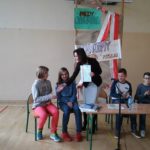 Świadectwo OMNIBUSA wręczyła Pani mgr Barbarze Porębskiej wicedyrektor Pani mgr Barbara Dyrek. Doceniając zaangażowanie Pani Dyrektor w inicjatywy na rzecz upowszechniania edukacji obywatelskiej wśród młodego pokolenia, wicedyrektor Pani mgr Elżbieta Bodziony wyróżniła gościa szkoły tytułem: „Urzędnika przyjaznego dzieciom”.