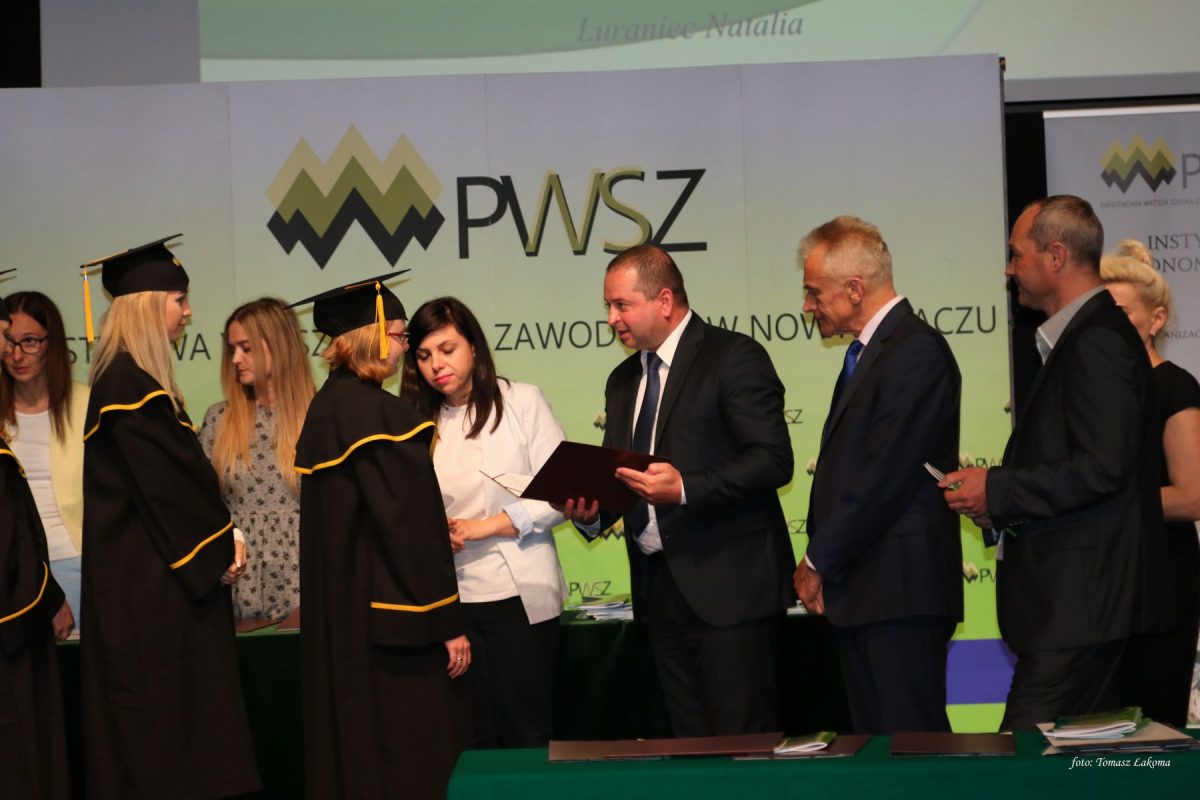 28 lipca 2018 w Auli im. prof. Andrzeja Bałandy odbyło się wręczenie dyplomów ukończenia studiów Absolwentom Instytutu Ekonomicznego. W tym ważnym wydarzeniu uczestniczyły władze Uczelni i Instytutu Ekonomicznego, Dyrektorzy poszczególnych instytutów oraz pracownicy naukowo-dydaktyczni. Uroczystość swoją obecnością uświetnili przedstawiciele lokalnego samorządu m.in Stanisław Pasoń, radny Sejmiku Województwa Małopolskiego i Wojciech Piech – Zastępca Prezydenta Miasta Nowego Sącza.