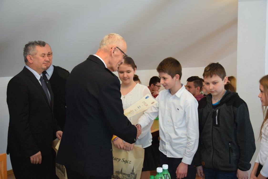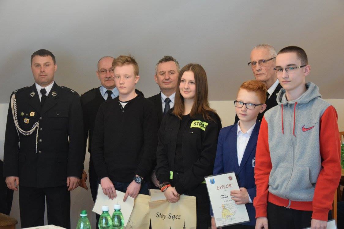 Najlepszym gratulowali zastępca burmistrza Starego Sącza Kazimierz Gizicki, brygadier Marian Marszałek naczelnik Wydziału Operacyjno – Szkoleniowego PSP w Nowym Sączu, Antoni Piętka prezes Zarząd Gminnego Związku OSP RP w Starym Sączu i Paweł Banach komendant Gminny Związku OSP RP w Starym Sączu. Wszyscy uczestnicy którzy zajęli kolejno 3 i 4 miejsce w poszczególnych grupach wiekowych otrzymali okolicznościowe dyplomy oraz odpowiednio do zajętych miejsc nagrody ufundowane przez Burmistrza Starego Sącza: głośniki bezprzewodowe, kubki termiczne, akcesoria do smartfonów, słuchawki sportowe do smartfonów, pamięci USB oraz słodycze.