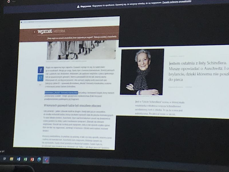 Gość młodzieży – Pan Grzegorz Lityński, wrocławianin, laureat prestiżowej nagrody Press Foto 2014 w kategorii „Życie codzienne” przybliżył młodzieży starosądeckiej SP1 historię bohaterki „Listy Schindlera” – Pani Bronisławy Horowitz – Karakulskiej i brata Pani Niusi – Pana Ryszarda Horowitza – światowej sławy grafika, prekursora komputerowego przetwarzania fotografii, bohatera dokumentalnego filmu: „Polański. Horowitz. Hometown” opowiadającego o dzieciństwie i młodości Ryszarda Horowitza oraz jego przyjaciela Romana Polańskiego, którego poznał w krakowskim getcie. Podczas prestiżowego Festiwalu Filmu i Sztuki „Dwa Brzegi” 2021 produkcję w reżyserii Mateusza Kudły i Anny Kokoszki – Romer wyróżniono Nagrodą Publiczności.