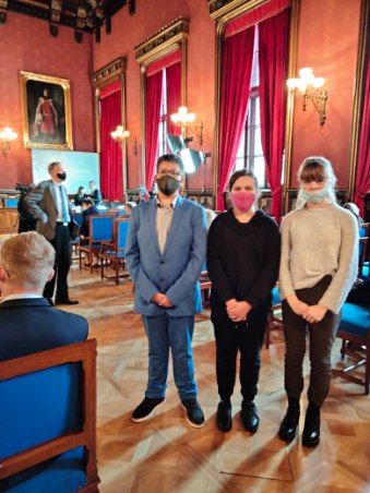 Starosądecką SP1, realizującą autorski program edukacyjny, któremu patronuje Jego Magnificencja prof. dr hab. Pan Jacek Popiel, w gmachu Collegium Novum Uniwersytetu Jagiellońskiego, reprezentowała koordynatorka projektu „Przygoda z nauką w murach UJ”: Jadwiga Postawa oraz uczniowie kasy VII d SP1 – nastoletni studenci UJ: Anna Cygan, Łucja Rams, Tomasz Izworski. Z koleiw uroczystości online uczestniczyła Pani Renata Jasińska – Nowacka, współkoordynatora projektu współpracy starosądeckiej SP1 z krakowska uczelnią wyższą.