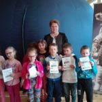 Dzieci otrzymały broszurkę z umysłowymi zabawami: krzyżówką, wykreślaną, rebusami, itp. Taka poglądowa lekcja w mobilnym planetarium – to doskonały sposób na naukę poprzez zabawę.