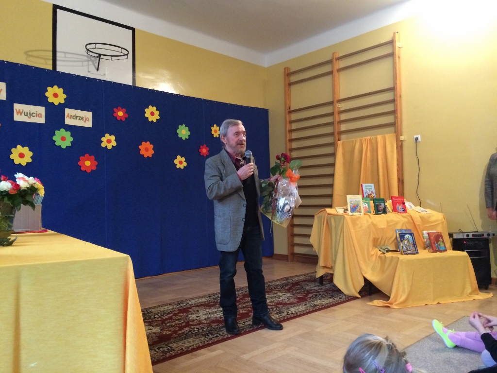 „Wujcio” już wiele razy gościł w progach naszej szkoły, nazywany jest tu przez swoich małych czytelników Przyjacielem. Literacka przyjaźń trwa już od ponad 12 lat i „Wujcio” jest zawsze gorąco witany.