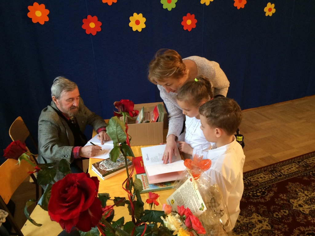 Piękne przyjęcie poety i akademia. Ciekawe , jaki jest poziom czytelnictwa wśród uczniów. Oby nie na pokaz .