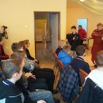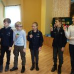 Kolejnym wyzwaniem dla uczestników stały się zabawy słowem. Autorka, wykorzystując swoje umiejętności pedagogiczne i aktorskie, bez trudności wciągała do zabawy kolejne grupy uczniów. Dzieci zmagały się z ćwiczeniami oddechowymi, intonacyjnymi, logopedycznymi. „Gimnastyka buzi i języka” przysporzyła im niemałych trudności, jednakże było przy tym też wiele zabawy. Nie nudzili się nawet ci, którzy nie zostali wywołani na scenę, gdyż pani Stadtmüller aktywizowała wszystkich uczestników. Mówiąc o rytmie w wierszu, autorka prezentowała różne ćwiczenia, powtarzane i naśladowane przez dzieci. Gdy na zewnątrz panowała minusowa temperatura, w auli biblioteki było gorąco: ręce przegrzewały się od klaskania, a nogi od tupania. Wszelkie wystukiwanki, wybijanki czy inne ćwiczenia ruchowe przyczyniały się do zrozumienia pojęcia rytmu w poezji.