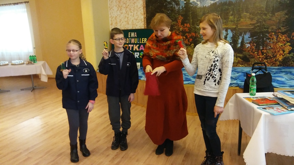Już od pierwszych chwil pani Ewa Stadtmüller nawiązała doskonały kontakt z młodzieżą. Młodzi czytelnicy od razu stali się aktywnymi uczestnikami spotkania. Autorka czytała fragmenty swoich książek, recytowała wiersze z pamięci, zadawała zagadki oraz przygotowała dla uczestników różnorodne zadania. Chcąc opowiedzieć historię bohaterów jednej ze swoich książek, pisarka zaprosiła do współpracy dzieci, dając im możliwość wcielenia się w bohaterów „smoczej opowiastki”; aby mogły bardziej wczuć się w role, otrzymały figurki lub pacynki przedstawiające postaci z legendy.