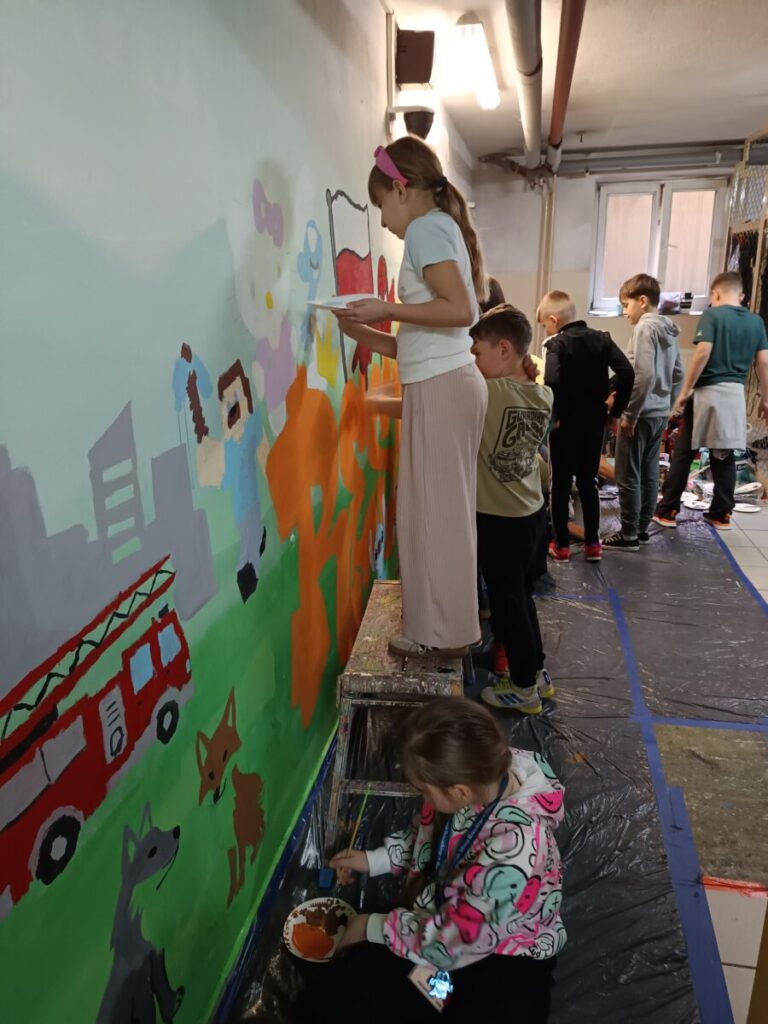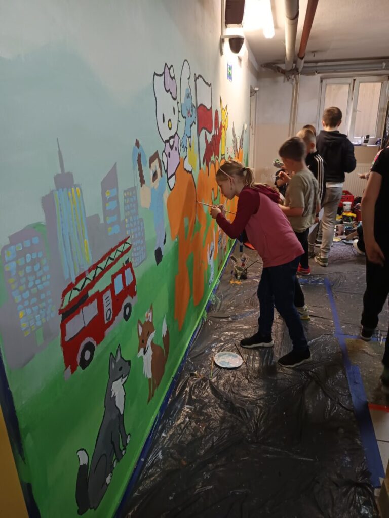 Na zajęciach z mgr Morsem dzieci zostały zapoznane ze sztuką muralu i pracami artysty. Następnie uczniowie sami projektowali swoje rysunki na mural. Pomysły były kreatywne i bardzo różnorodne. Mgr Mors zwrócił uwagę dzieci na przestrzeganie szacunku „ulicy”, czyli szacunku do miejsca pracy drugiej osoby i jej dzieła. Bez tego murale nie mogłyby przetrwać i cieszyć nasze oczy długi czas.
