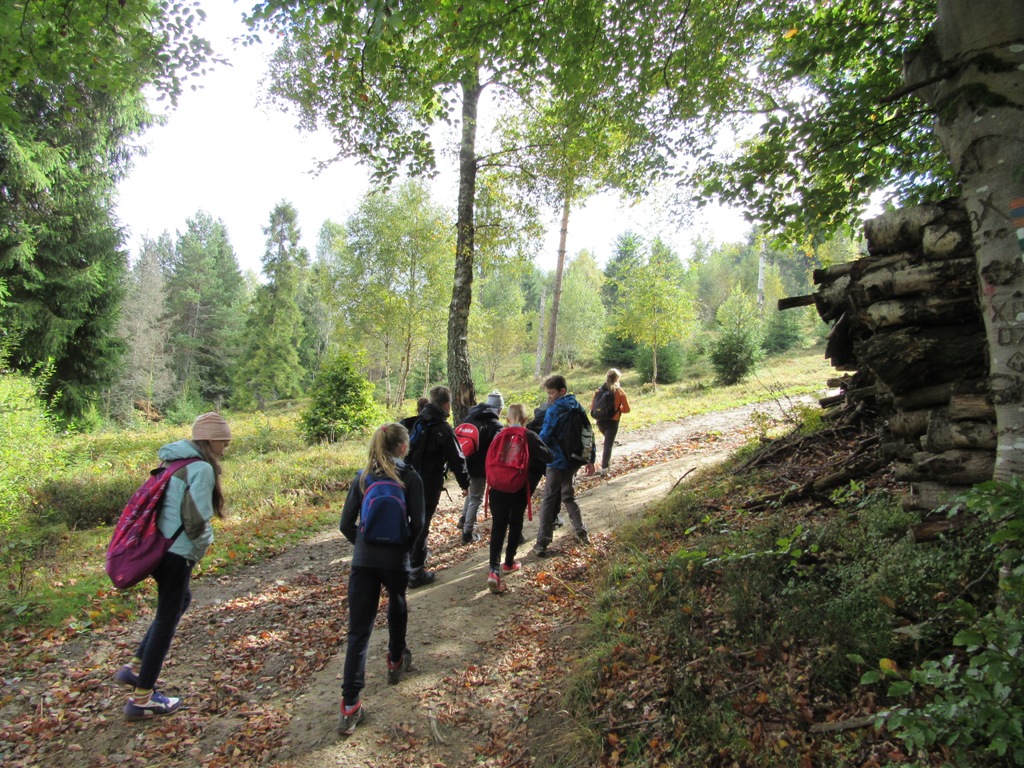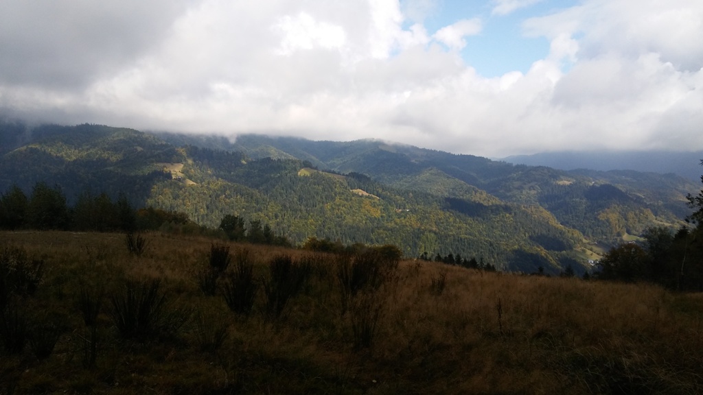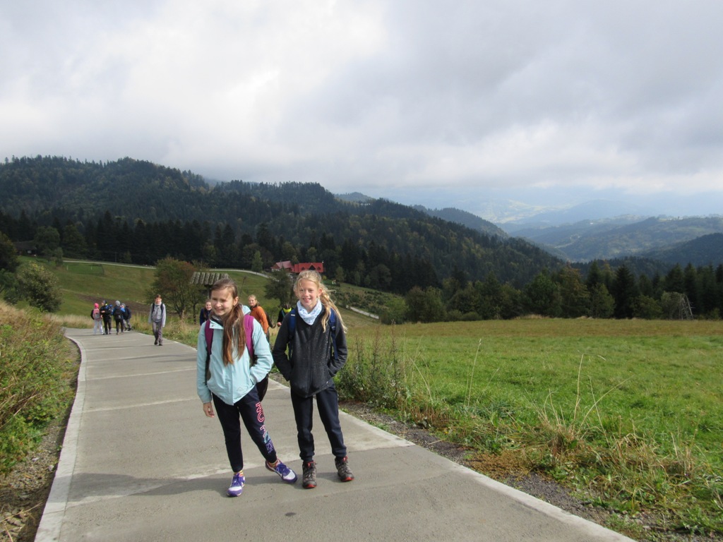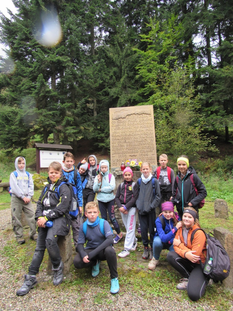 Zatrzymujemy się przy Pomniku Kurierów, gdzie uczniowie poznają fakty związane ze szlakiem kuriersko-przerzutowym w Beskidzie Sądeckim. Chwile refleksji w kroplach deszczu. Za chwilę wychodzi słońce i idziemy na Suchą Dolinę , a potem wędrujemy w stronę Bacówki na Obidzy. Tam czas na odpoczynek, ciepłą herbatę i posiłek, a potem idziemy dalej szlakiem kuriersko-przerzutowym w stronę Przełęczy Obidza, gdzie zmieniamy szlak czerwony na zielony. Wędrując w kierunku zalesionego szczytu Eliaszówka na granicy polsko-słowackiej w Górach Lubowelskich, podziwiamy piękno wierzchołków górskich wyłaniających się spośród mgieł.