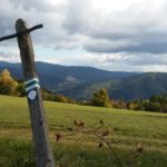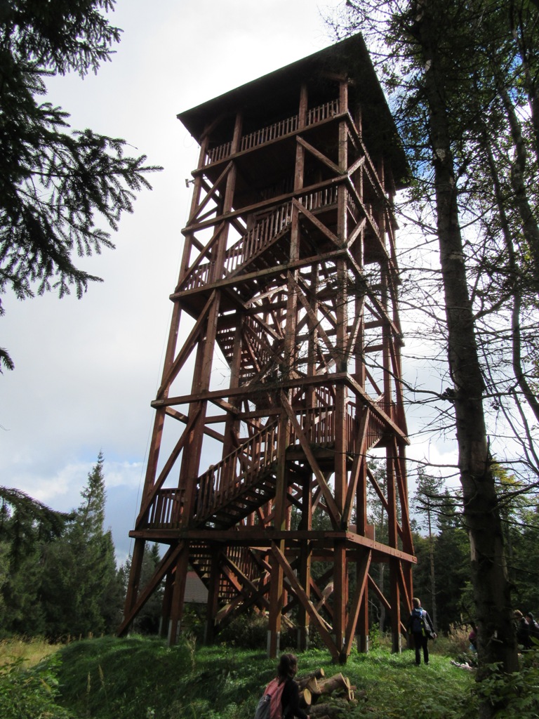 Z wieży widokowej na Eliaszówce, której okolice były w okresie II wojny światowej miejscem przekraczania granicy przez kurierów, podziwiamy niezwykłe panoramy, a potem ruszamy w kierunku Piwnicznej za zielonymi znakami, mijając ścieżkę prowadzącą do Chaty na Magórach oraz odgałęzienie niebieskiego szlaku do Kosarzysk. Idziemy dalej zielonym szlakiem, przemierzając strome fragmenty ścieżki po schodkach znajdujących się na szlaku.